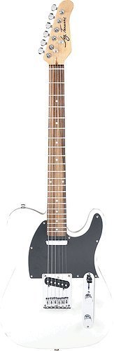Classic style, single cutaway, lightweight solid body, maple neck, rosewood fingerboard, selector switch, 1-v and 1-t with pickguard and die cast machines. ivory